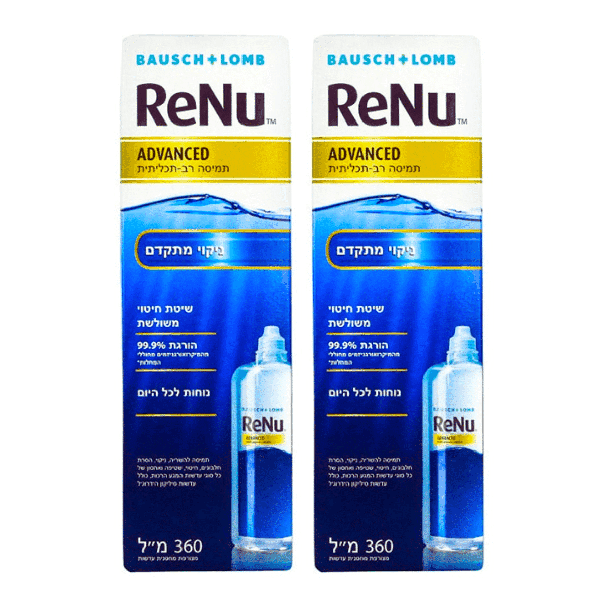 - בקבוק תמיסת ReNu Advanced בנפח 360 מ"ל.